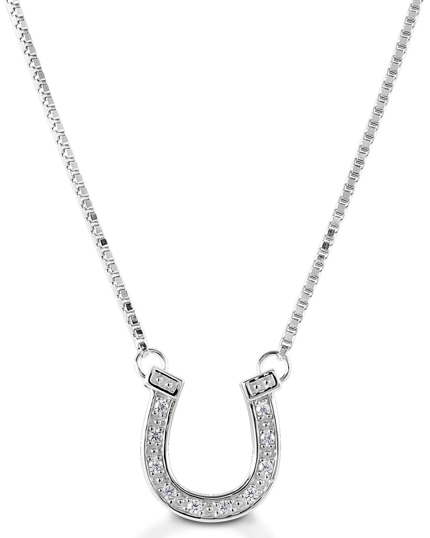 - Detailed horseshoe pendant with pave CZ stones